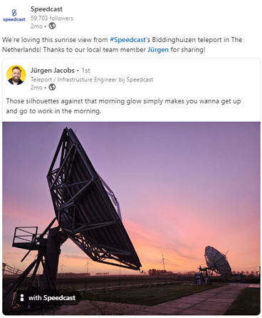 Check out the beautiful sunrise view from the Speedcast Biddinghuizen teleport in The Netherlands!